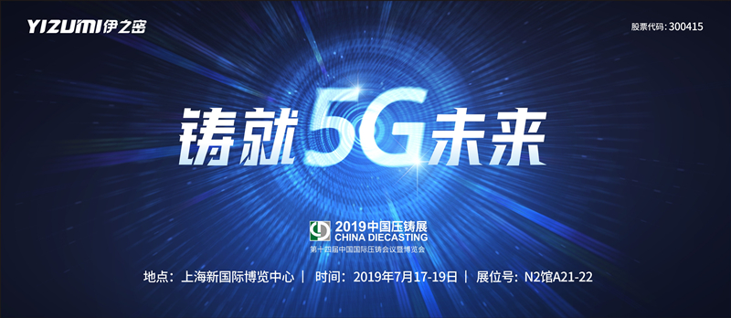 ![]() 2019年6月6日,國家工信部正式向電信運營商發放5G牌照。此舉標志著我國提前進入5G商用時代。5G時代的到來,成為了市場需求的增長點,同樣也引領著金屬成型行業的升級。5G通訊基站殼體、散熱器、濾波器,5G手機中板等,對壓鑄件形成龐大的市場需求。而壓鑄行業其實已早有布局,如今5G更成為業界迅速展開的新領域。 把握5G新機遇 傾情演繹5G領域壓鑄技術及整套解決方案 一年一度的行業盛會“CHINA DIECASTING 2019中國壓鑄展”即將在上海新國際博覽中心拉開大幕。把握住5G通訊帶來的新機遇,應對其對壓鑄成型的新需求,伊之密以“鑄就5G未來”主題參展,現場展示H系列高端冷室壓鑄機,并集中展現伊之密在5G領域的整套解決方案。