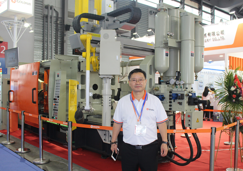 廣東固德威李昌滿先生 在“CHINA DIECASTING 2019中國壓鑄展”上,廣東順德固德威精密機械有限公司(下稱“廣東固德威”)落座上海新國際博覽中心N2館N2B11展位,展示一套高性能冷室壓鑄單元,由固德威GDC500SM冷室壓鑄機,配套震界給湯機、噴霧取件一體機。 據了解,GDC系列是廣東固德威第二代冷室壓鑄機產品,也是在GW系列基礎上升級的高性能冷室機系列,目前擁有從200-2000T多個款式的鋁、鎂合金高性能冷室壓鑄機,專門針對航空航天、汽車、通訊等行業而開發。