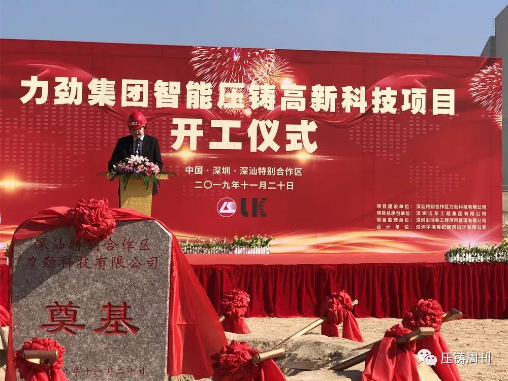 ![]() 力勁集團高層出席了開工儀式 壓鑄周刊(2019年11月20日 深圳)今天上午,力勁集團智能壓鑄高新科技項目開工儀式,在深圳市深汕特別合作區舉行。項目將建成力勁集團的一個新的壓鑄機生產、研發基地。力勁集團創辦人劉相尚先生,集團CEO劉卓銘先生,深圳領威科技有限公司兼力勁機械(深圳)有限公司總經理潘玲玲女士,以及部分集團高層出席了開工儀式。 據悉,力勁集團智能壓鑄高新科技項目,位于深圳市深汕特別合作區,占地150多畝,總投資4億元,將建設2棟生產廠房、1棟綜合樓、2棟宿舍樓及相應配套工程。力勁集團主營壓鑄機、注塑機、CNC加工中心等產品,擁有深圳(龍華)、中山、上海、寧波、昆山、阜新、重慶、臺中,以及意大利等多個生產基地,此次開工項目將建成一個全新的生產基地。
