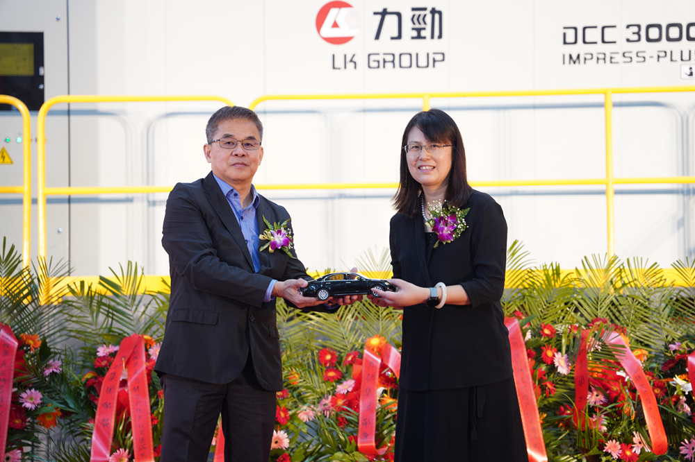 一汽聯合壓鑄董事長洪紳福與力勁集團深圳領威科技有限公司總經理潘玲玲進行設備交接