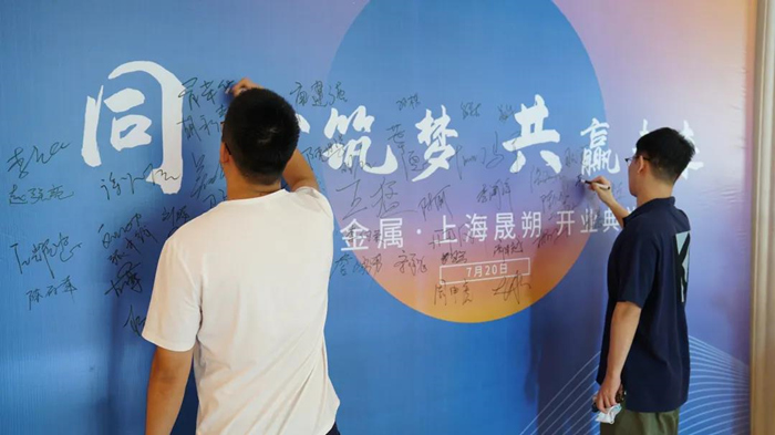 海天金屬總經(jīng)理樂曉東、海天金屬營銷部總監(jiān)洪劍文、上海晟朔總經(jīng)理王猛、上海晟朔副總經(jīng)理邵峰等相關(guān)領(lǐng)導(dǎo)與一百多位海天金屬合作伙伴、客戶出席了本次開業(yè)典禮&研討會。 同心筑夢,共贏未來