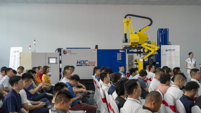 研討會現(xiàn)場 本次研討會上,海天金屬的技術(shù)專家們?yōu)榭蛻糁v解了《壓鑄新工藝介紹及案例分析》、《海天金屬RTC壓射系統(tǒng)簡介》、《一體化車身解決方案》和《壓鑄工藝應(yīng)用》。并邀請了自動化供應(yīng)商和真空設(shè)備供應(yīng)商的技術(shù)專家講解了《智能壓鑄周邊集成柔性一體生產(chǎn)線方案介紹》和《汽車結(jié)構(gòu)件一體成型-超高真空技術(shù)應(yīng)用》。