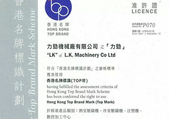 香港名牌核準產品類別包括“力勁”牌熱室壓鑄機、冷室壓鑄機、注塑機、數(shù)控加工中心(CNC加工中心)。力勁多種機械產品被認定為香港名牌可謂實至名歸。力勁壓鑄機是行業(yè)唯一中國名牌產品,力勁集團乃全球最大壓鑄機制造商。