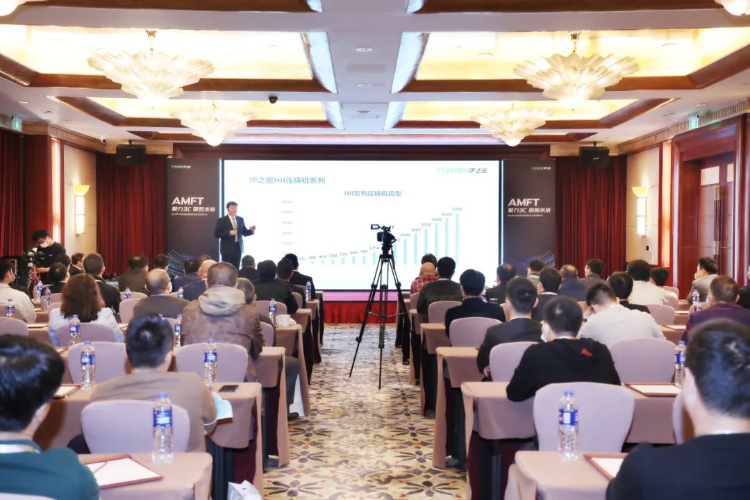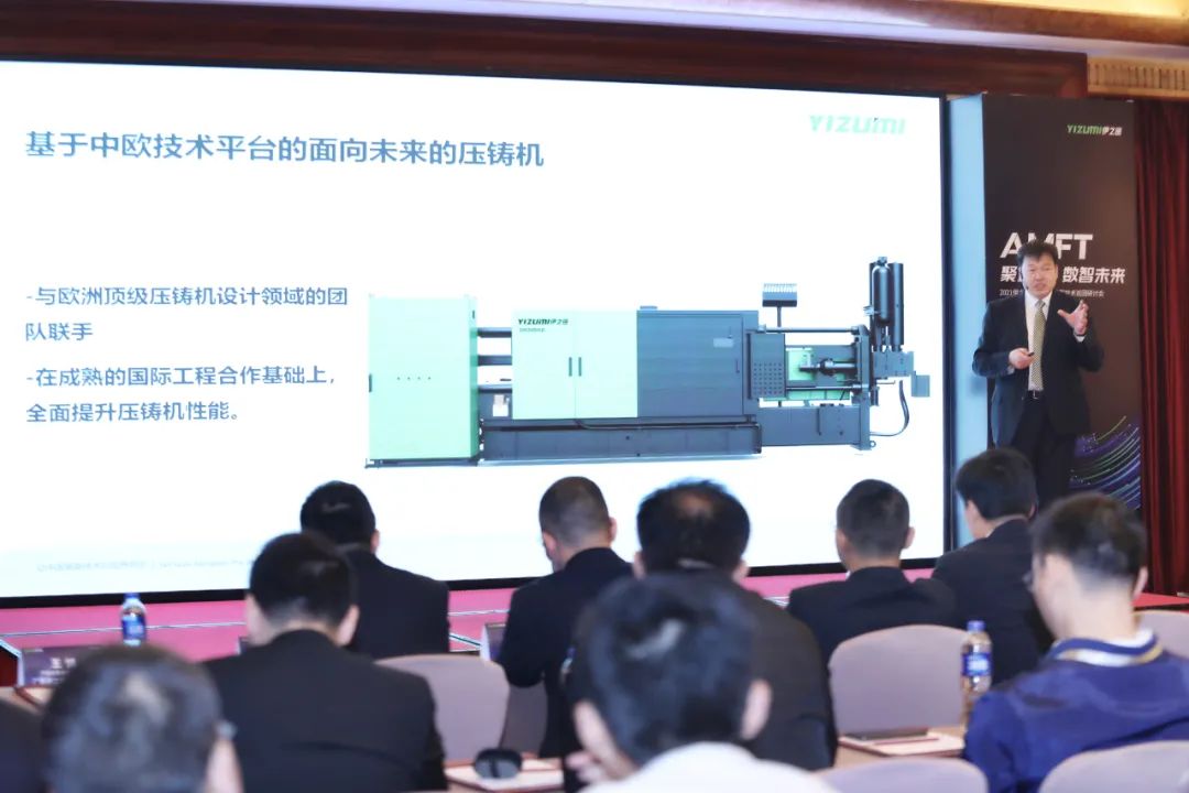 伊之密技術專家們演講 研討會上,有著行業豐富經驗的伊之密技術專家們先后上臺,分享了升級版型H II系列冷室壓鑄機的研發成果,分析了薄壁件在壓鑄生產的缺陷及解決方案,以及半固態鎂合金注射成型機在3C類薄壁產品領域的應用優勢。