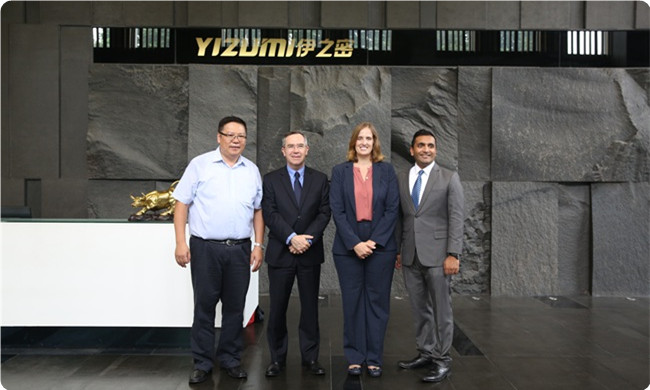 (順序,從左到右:伊之密董事總經(jīng)理、美國駐廣州總領(lǐng)事館總領(lǐng)事白智理 Charles Bennett、美國駐廣州總領(lǐng)事館對外聯(lián)絡(luò)部主任 白佳麗Jenny Bah、美國駐廣州總領(lǐng)事館政治經(jīng)濟(jì)部領(lǐng)事Aamod Omprakash) 近日,美國駐廣州總領(lǐng)事館總領(lǐng)事白智理、外聯(lián)部主任白佳麗、經(jīng)濟(jì)領(lǐng)事歐慕德等一行,到總部位于佛山市順德的廣東伊之密精密機(jī)械股份有限公司參觀訪問。 這是總領(lǐng)事白智理自2015年8月就任后首次訪問順德,了解順德經(jīng)濟(jì)文化教育情況。 對于伊之密之行,白智理非常重視,參觀了伊之密在高黎總部的裝備車間和園林式的辦公環(huán)境,并了解企業(yè)的近期發(fā)展情況、以及企業(yè)對市場發(fā)展變化的看法和應(yīng)對策略,尤其是HPM在北美的復(fù)出進(jìn)展。 董事總經(jīng)理甄榮輝介紹說:“自2011年被伊之密收購后,HPM已經(jīng)成功重返注塑和壓鑄的舞臺(tái),并取得了眾多北美客戶的信任。” |