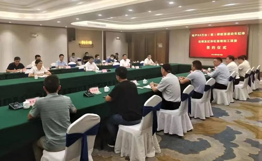 襄陽長源朗弘科技有限公司(以下簡稱:襄陽長源朗弘)與伊之密簽署批量采購協議,訂購8臺伊之密DM3500HII、2臺伊之密LEAP7000T超大型壓鑄機,用于生產新能源混動車缸體及壓鑄一體化生產,此舉標志著襄陽長源朗弘正式進軍新能源市場。