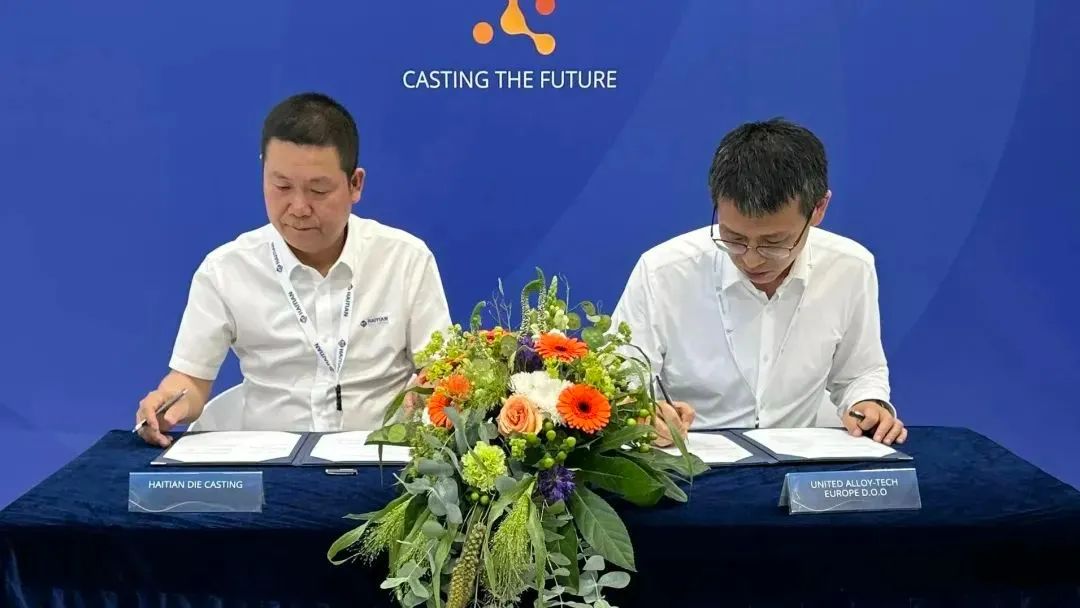 GIFA 2023,海天金屬與精確實業(UATE)、日本OKAYA & Co, LTD、美利信科技等三家國際知名企業達成戰略合作協議 據了解,精確實業是全球知名汽車零部件廠家敏實集團旗下成員,后者為全球30多個國家的60多個汽車品牌提供服務。OKAYA & Co, LTD則是一家總部位于日本的世界知名貿易公司,在長期與日本汽車制造商的合作中有著豐富的經驗。未來,海天金屬將與各方將利用市場協同效應和規模化資源,共同開拓更廣闊的國際市場。 而海天金屬與重慶美利信科技簽署全球戰略合作協議,在GIFA這個國際舞臺向全世界宣布:雙方將聯合開發合模力20000T超大型壓鑄機,并在大型及超大型一體化壓鑄領域展開研發技術合作,實現成果共享。 ??大型及一體化壓鑄,千載難逢歷史機遇 隨著新能源汽車、汽車“輕量化”趨勢加速向前推進,一體化壓鑄正逐步被全球整車廠認可。海天金屬充分把握市場需求,先后推出7000T、8800T超大型壓鑄機,打造配套2500T、3500T大型壓鑄島和8800T超大型壓鑄島的全球應用服務中心,切實助力行業發展,填補一體化上下游產業空缺,為客戶提供全套解決方案、一體化試模等服務。