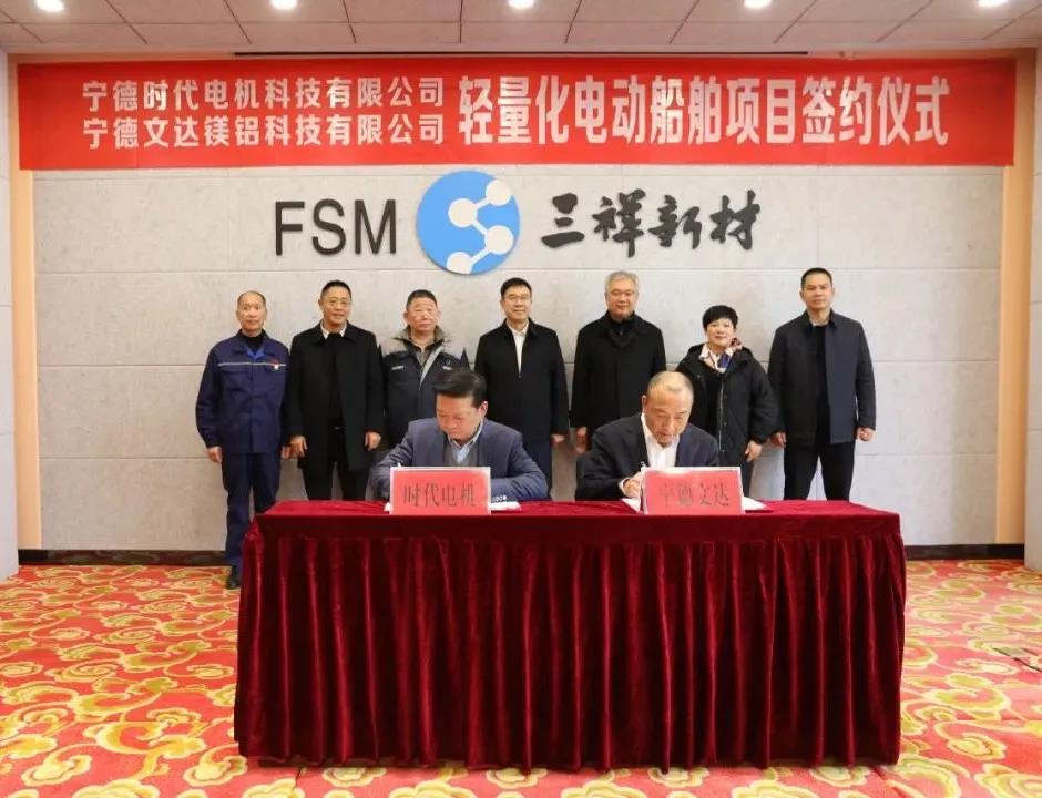 1月1日,寧德文達鎂鋁科技有限公司與寧德時代電機科技有限公司就輕量化電動船舶項目舉行簽約。