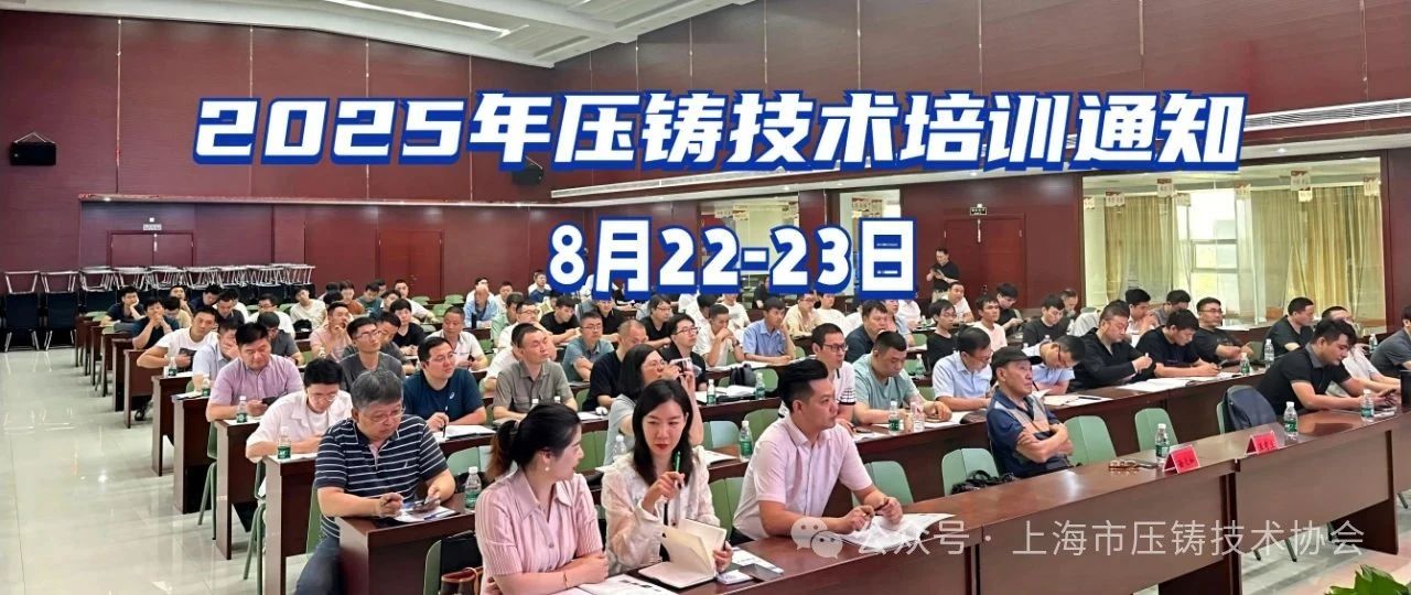 【專業培訓】上海市壓鑄技術協會2025年壓鑄技術培訓通知