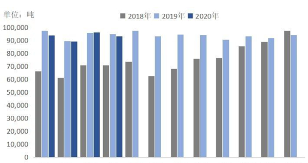 2020年1-11月,中國共產(chǎn)原鎂77.07萬噸,同比下降0.47%。2020年,國內(nèi)鎂消費(fèi)量預(yù)計(jì)48.5萬噸左右,同比基本保持一致。