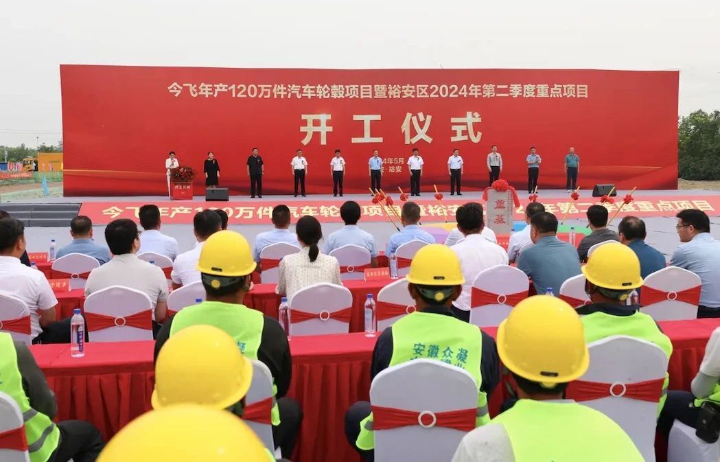 5月26日,今飛凱達(dá)年產(chǎn)120萬件汽車輪轂項(xiàng)目開工儀式在六安市裕安區(qū)舉行。