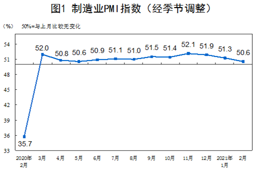 2月我國(guó)制造業(yè)PMI為50.6%