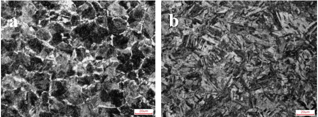 經(jīng)過(guò)淬回火后實(shí)驗(yàn)鋼由模具供貨態(tài)的片狀珠光體和網(wǎng)狀鐵素體組織轉(zhuǎn)變?yōu)榛鼗瘃R氏體和少量殘留奧氏體組織,且抗拉強(qiáng)度和硬度顯著增加。