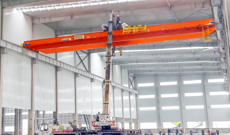 華達科技新能源輕合金壓鑄項目進行鋼結構吊裝