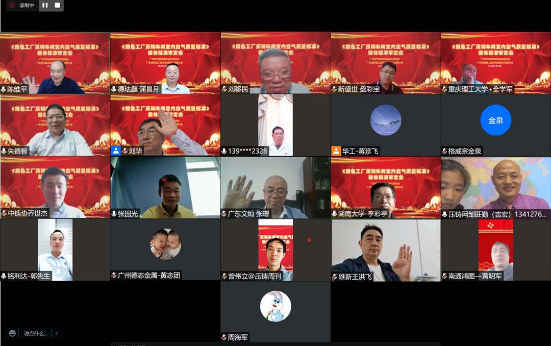 3月19日,廣東省節能減排標準化促進會和廣東省機械工程學會鑄造與壓鑄分會,組織召開了《綠色工廠壓鑄車間室內空氣質量標準》審定會。