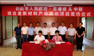 近日(7月18日),廣東省臺山市人民政府與喜德盛、中鎂在深圳舉行鎂合金新材料產業基地項目簽約儀式。
