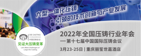 2022年全國(guó)壓鑄行業(yè)年會(huì)將于3月23-25日在重慶隆重召開(kāi)。