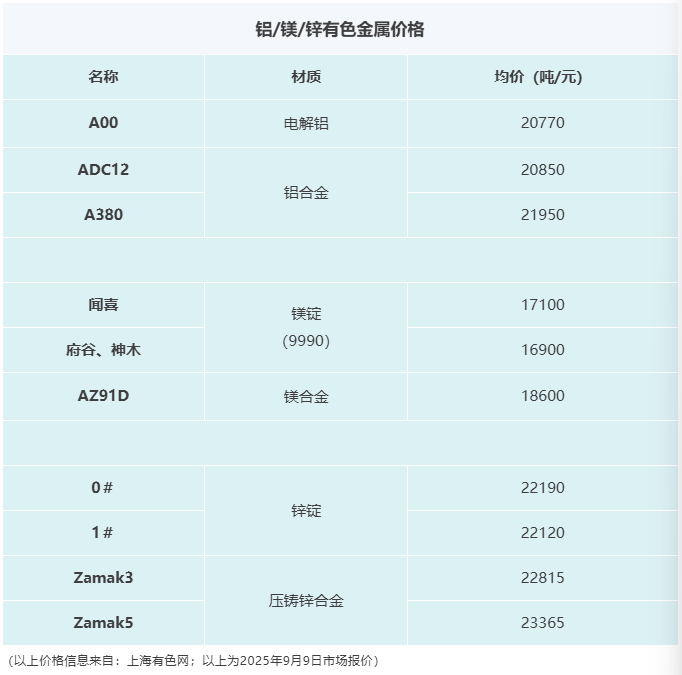 壓鑄早報2025/9/10星期三