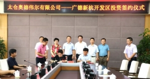近日(8月2日),太倉奧德偉爾有色金屬零部件有限公司——安徽廣德新杭開發(fā)區(qū)投資簽約活動在廣德縣舉行。