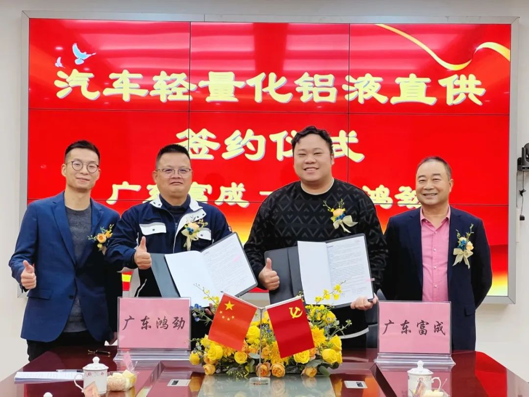 2024年3月4日,廣東鴻勁金屬鋁業有限公司與廣東富成聯合金屬制品有限公司就汽車輕量化項目鋁液供應進行隆重簽約儀式。