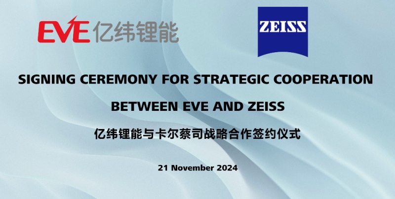 蔡司和億緯鋰能簽訂戰略合作協議,合作提升電池質量解決方案,制定電池質量行業標準,共同推進全球電池行業高質量發展。