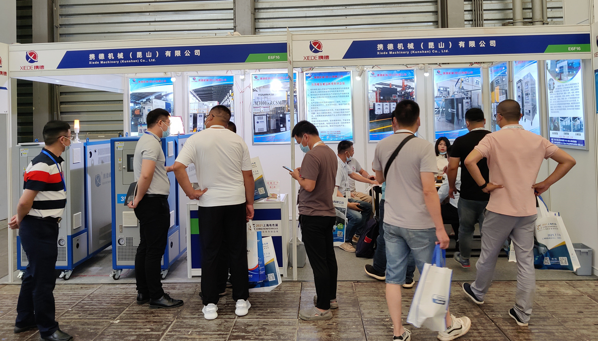 攜德機(jī)械(昆山)有限公司,為海天金屬現(xiàn)場展示的壓鑄島,配套提供模具溫度控制解決方案,展示了其經(jīng)優(yōu)化升級的壓鑄專用模溫機(jī)。