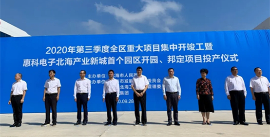 9月28日,2020年第三季度全區(qū)重大項(xiàng)目集中開(kāi)竣工暨惠科電子北海產(chǎn)業(yè)新城首個(gè)園區(qū)開(kāi)園、邦定項(xiàng)目投產(chǎn)儀式在廣西惠科電子北海產(chǎn)業(yè)新城S5園區(qū)舉行。