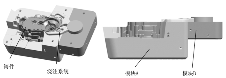 實(shí)踐驗(yàn)證表明,優(yōu)化方案不僅提高了模具的質(zhì)量、可維修性以及壓鑄成形的成品率,同時(shí)降低了模具的加工難度,提高了生產(chǎn)效率和模具壽命。