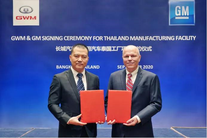 9月29日,長(zhǎng)城汽車與通用汽車在泰國(guó)曼谷正式簽署股權(quán)收購(gòu)協(xié)議。根據(jù)協(xié)議,通用汽車泰國(guó)公司的羅勇府汽車制造工廠和動(dòng)力總成工廠將于11月全部移交給長(zhǎng)城汽車。