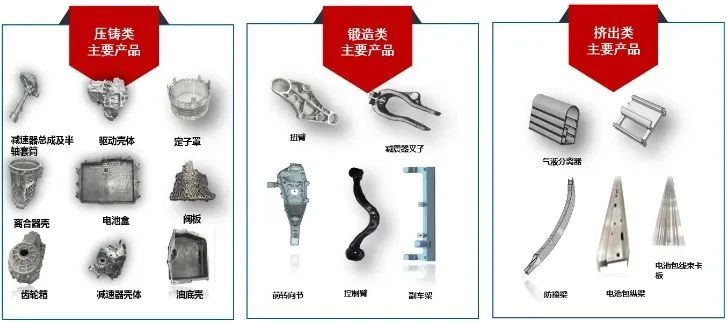 旭升集團在國內外持續擴大投資,產品已廣泛覆蓋動力總成、熱管理系統、底盤懸掛系統、電池盒、防撞梁及門檻梁等車身結構件。