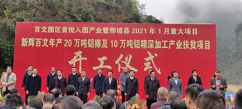 1月6日,那坡縣2021年1月重大項目--新輝百文年產(chǎn)20萬噸鋁棒及10萬噸鋁精深加工產(chǎn)業(yè)扶貧項目開工。