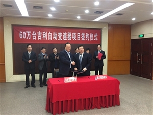 浙江吉利變速器有限公司與浙江桐鄉(xiāng)市人民政府舉行簽約儀式,總投資35億元的60萬臺(tái)吉利自動(dòng)變速器項(xiàng)目正式落戶桐鄉(xiāng)。