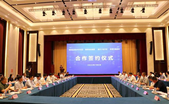 7月6日,濱州經濟技術開發區、魏橋創業集團、重慶小電天體新能源汽車有限公司及軟銀中國資本四方就共同合作新能源汽車產業園項目,在山東濱州市舉行簽約儀式。