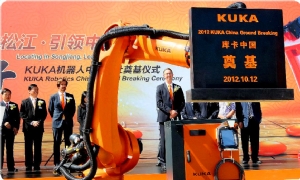庫卡機(jī)器人(上海)有限公司在上海松江舉行機(jī)器人生產(chǎn)基奠基儀式。此乃其在中國的首個(gè)機(jī)器人生產(chǎn)基地。