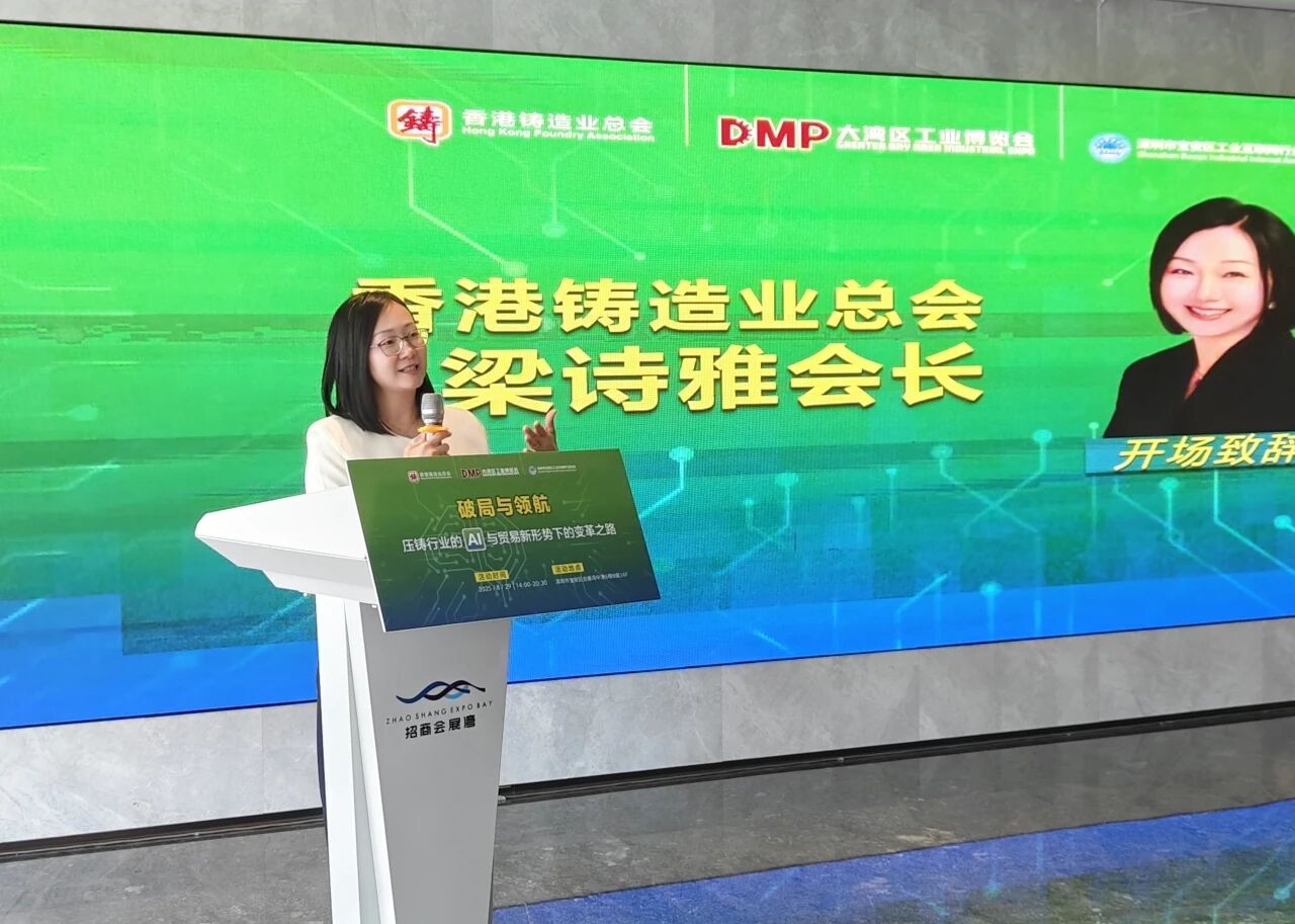香港鑄造業總會會長梁詩雅女士致辭 研討會伊始,香港鑄造業總會會長梁詩雅女士率先致辭。她代表香港鑄造業總會,對參會的企業家代表表示熱烈歡迎與誠摯感謝。梁詩雅女士指出,當前壓鑄行業作為制造業的基石,在粵港澳大灣區正加速朝著智能化、高端化方向發展。然而,行業也面臨著全球產業變革、國際貿易形勢復雜以及AI技術滲透帶來的諸多機遇與挑戰。舉辦此次研討會,旨在探討“如何搶占技術先機、找準貿易定位、把握政策方向”,搭建一個交流平臺,讓各方分享洞察、凝聚共識,為行業注入新的發展動力。她表示,希望推動華南壓鑄產業把握機遇,實現更大發展,并預祝研討會圓滿成功,參會者都能有所收獲。