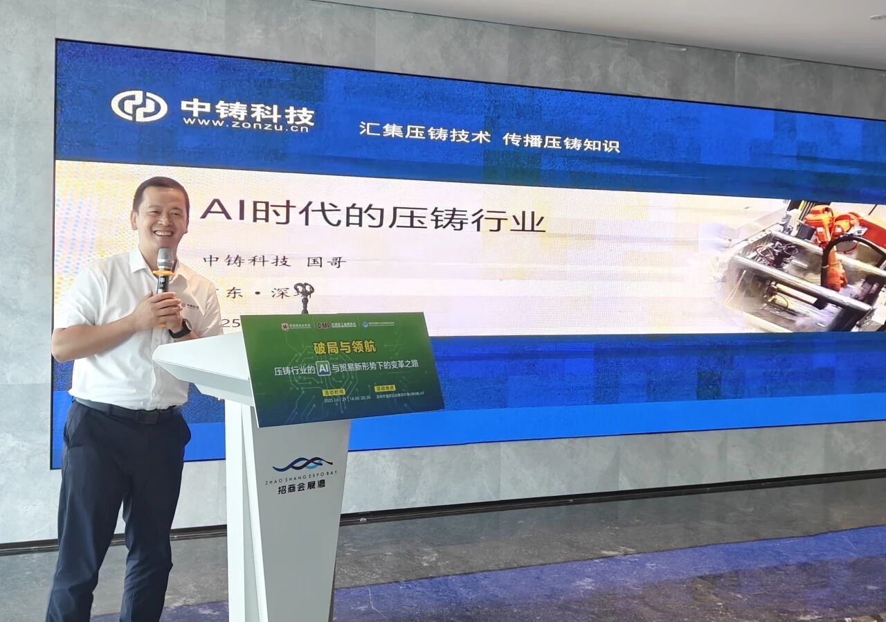 主辦方為徐曉迪教授頒發感謝牌 在中美制造業對比方面,中國制造業在貿易戰中逆勢增長。到2025年“中國制造2025”收官之際,中國在10大核心領域中有4個位居世界第一,5個進入世界決賽圈,占全球制造業的比重超過1/3,超過了美國、日本、德國、英國和法國的總和,未來這一優勢可能進一步擴大,這也引發了西方的擔憂。 在俄烏沖突中,俄羅斯憑借武器“管夠”撐住了局面,而美國因去制造業導致武器生產能力不足、庫存告急,這凸顯了制造業對戰爭勝負及國家實力的關鍵作用。目前,美國在鋼鐵、造船等產業能力遠遜于中國。 中美博弈的焦點在于,特朗普政府通過高稅、要求投資等方式推動制造業回流,重點針對半導體、鋼鐵、稀土、造船等與戰爭和科技相關的領域。中美在芯片(中國補短板)、稀土(美國補短板)等領域互相“卡脖子”,博弈十分激烈。 展望未來,人工智能是第四場工業革命的核心,具身機器人、無人駕駛、低空飛行器等領域將成為變革的重點,中美是主要競爭者。徐曉迪教授認為,大灣區在AI領域具有優勢,未來10年中美或通過臺海問題(潛在引爆點)或科技革命決出勝負。他建議企業目前觀望中美貿易談判,同時積極擁抱AI。 劉志國先生:AI時代的壓鑄行業,破解行業痛點路徑 中鑄科技COO劉志國先生以“AI時代的壓鑄行業,破解行業痛點路徑”為題,聚焦AI在多領域尤其是壓鑄行業的應用,為參會者帶來了新的思路。 劉志國先生回顧了AI的發展歷程,2022年底ChatGPT的出現推動了AI走向消費級,2023年國內企業紛紛跟進,2024年進入多模態階段,2025年低功耗大模型出現且國家高度重視,AI已成為中美博弈的關鍵領域。