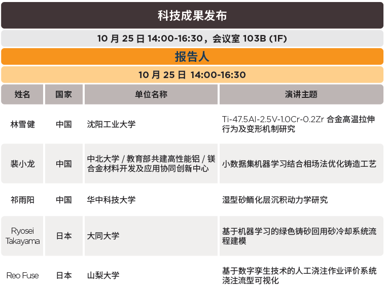 *點(diǎn)擊查看更多…… 鑄造科技成果及企業(yè)難題發(fā)布會 10月25日 14:00-16:30會議室103B (1F)