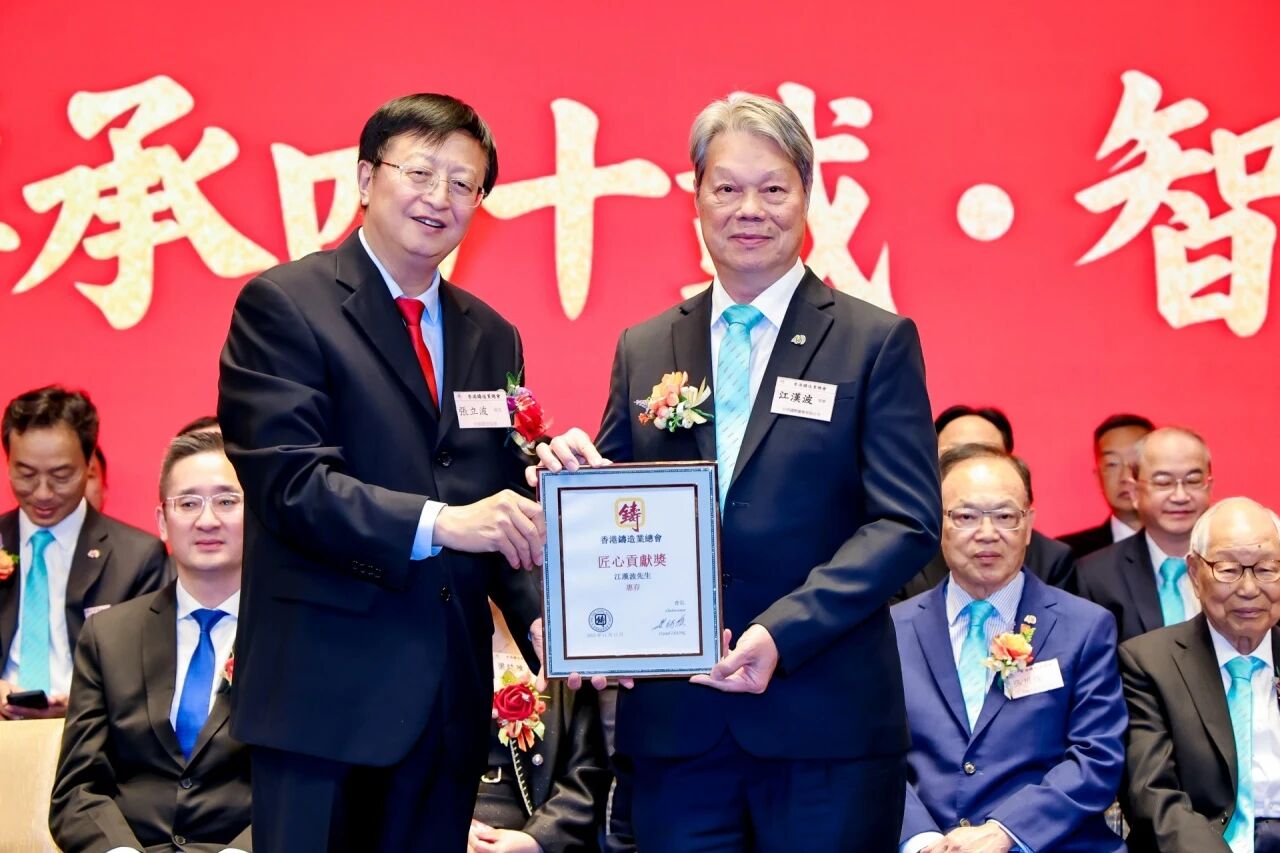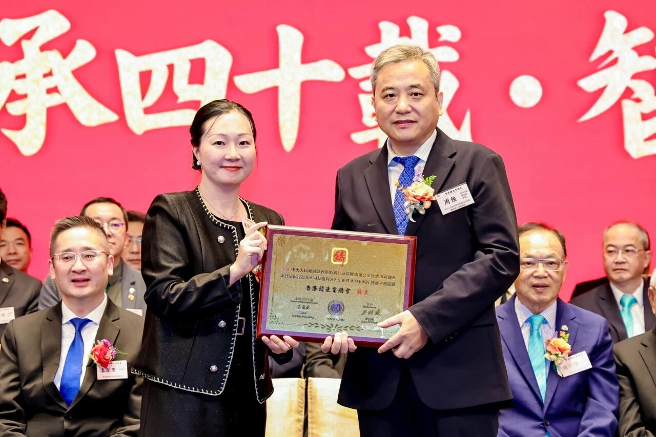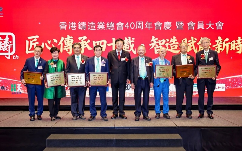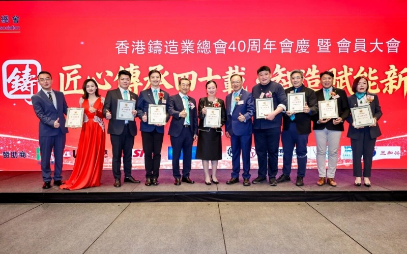 ![]() 匠心傳承四十載·智造賦能新時代 冬韻悠揚,禮贊華章。2025年11月11日下午,香港鑄造業總會40周年會慶暨2025年度會員大會于香港麗晶酒店盛大舉行。這一盛會,既見證了香港鑄造業總會四十載櫛風沐雨、砥礪奮進的輝煌歷程,更凝聚起全體會員攜手并肩、共繪行業未來藍圖的磅礴力量。 香港鑄造業總會會長梁詩雅女士及總會理事會領導架構成員,香港商務及經濟發展局副局長陳百里博士,中央人民政府駐香港特別行政區聯絡辦公室經濟部副部長兼貿易處負責人周強先生,亞洲鑄造業聯合會主席、中國機械工業聯合會副會長、中國鑄造協會會長張立波先生,以及香港鑄造業總會會員企業代表、來自全國各省市鑄造行業協會/學會領導、專業媒體記者等400余名嘉賓齊聚一堂,共同見證這一重要時刻。 會員大會:總結過往,展望新程 當日下午17:00,會員大會在莊嚴的國歌聲中拉開帷幕,現場氛圍莊重有序。梁詩雅會長率先登臺,作全面匯報總會全年會務工作及未來展望。她指出,過去一年,總會舉辦及參與各類行業活動達34場,活動內容涵蓋技術交流、市場拓展、人才培育等多個領域,成功搭建起多元交流平臺,促進了會員企業間的聯動與合作。同時,總會積極拓展國際市場,為會員企業提供更多發展機遇。