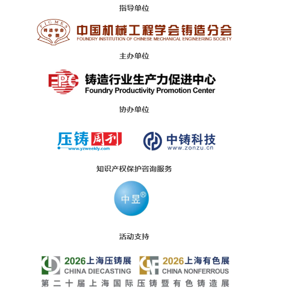 ![]() Award of Die Casting Innovative Technologies 創新技術評選活動 歷經20余年的高速發展,中國壓鑄行業目前已經進?到轉型升級的關鍵時期,協同創新與高質量發展逐漸成為行業共識。為鼓勵及帶動壓鑄行業相關企業技術與產品創新,在全行業形成創新風尚,提升企業競爭力,鑄造行業生產力促進中心自2017年起在全行業組織開展“壓鑄行業年度創新技術與產品評選”活動。截止目前,共認定及表彰國內外壓鑄領域創新技術與產品100余項,極大的促進了我國壓鑄行業的發展與技術進步。 ♦ 提示:活動全程不收取任何費用! 2026 現將2026年度全國壓鑄行業創新技術與產品評選活動相關事宜通知如下,歡迎相關企業及單位積極參與。 參與企業范圍 壓鑄及有色鑄造全產業鏈及上下游相關企業。 參評范圍 評選對象包括壓鑄及有色鑄造行業的創新產品、創新技術、創新材料、創新工藝、創新應用等。