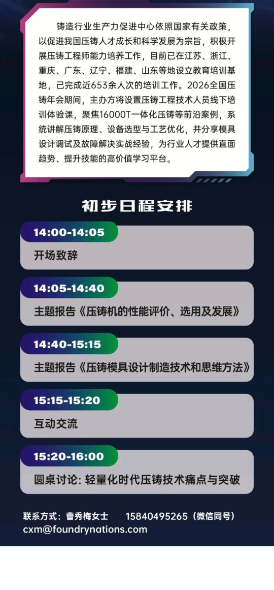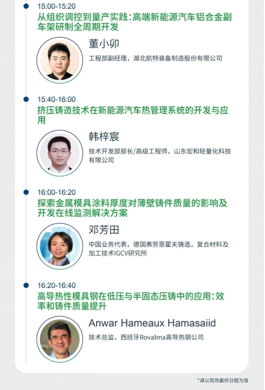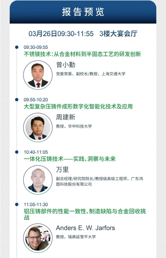 本次會議會議以“鋁”穩行遠,“鎂”啟新程為主題,旨在匯聚全球學術界、企業界、車廠等各方力量,以技術交流推動“鋁穩基業,鎂開新局”的產業格局,共同繪制輕量化時代的全球壓鑄產業新藍圖。誠邀壓鑄同仁蒞臨參會!