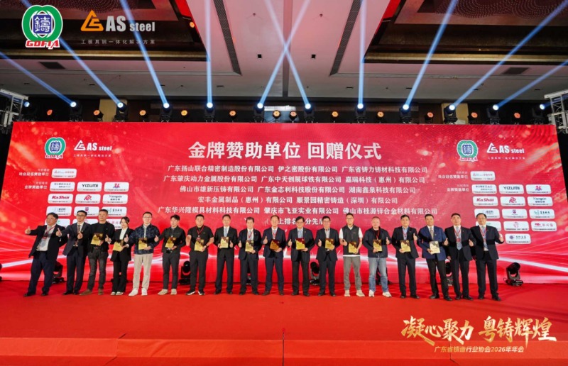 本次年會(huì)的圓滿舉辦,離不開(kāi)行業(yè)優(yōu)秀企業(yè)的鼎力支持。廣東揚(yáng)山聯(lián)合精密制造股份有限公司、伊之密股份有限公司、廣東省鑄力鑄材科技有限公司、廣東肇慶動(dòng)力金屬股份有限公司、廣東中天創(chuàng)展球鐵有限公司、嘉瑞科技 (惠州) 有限公司、佛山市雄新壓鑄有限公司、廣東金志利科技股份有限公司、湖南鑫泉科技有限公司、宏豐金屬制品 (惠州) 有限公司、順景園精密鑄造 (深圳) 有限公司、廣東華興隆模具材料科技有限公司、肇慶市飛亞實(shí)業(yè)有限公司、佛山市桂源鋅合金材料有限公司作為本次年會(huì)金牌贊助單位,傾情助力盛會(huì)圓滿舉行。主辦方特為各金牌贊助單位回贈(zèng)紀(jì)念禮品,致謝厚愛(ài)與支持。
