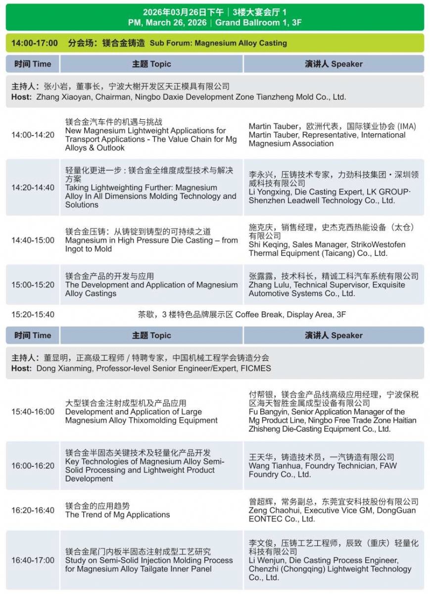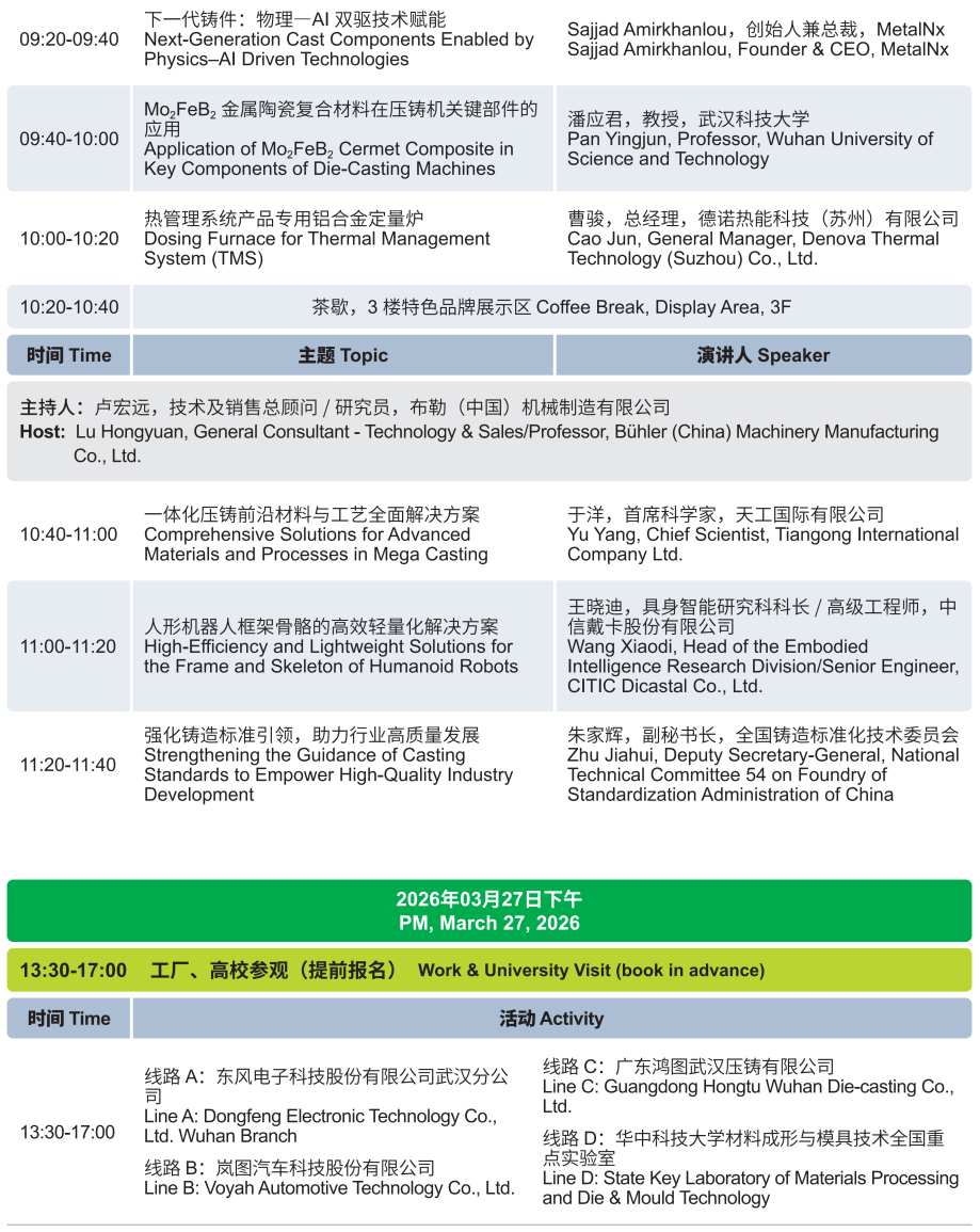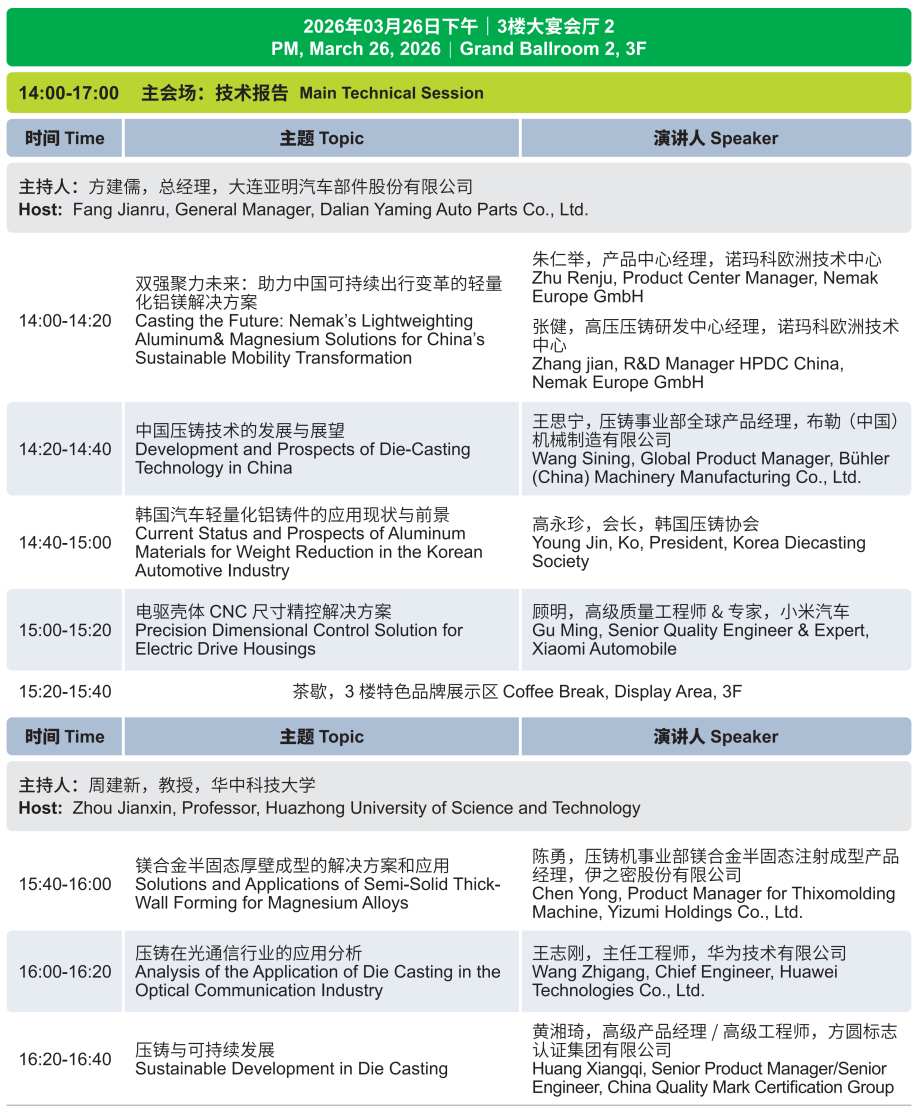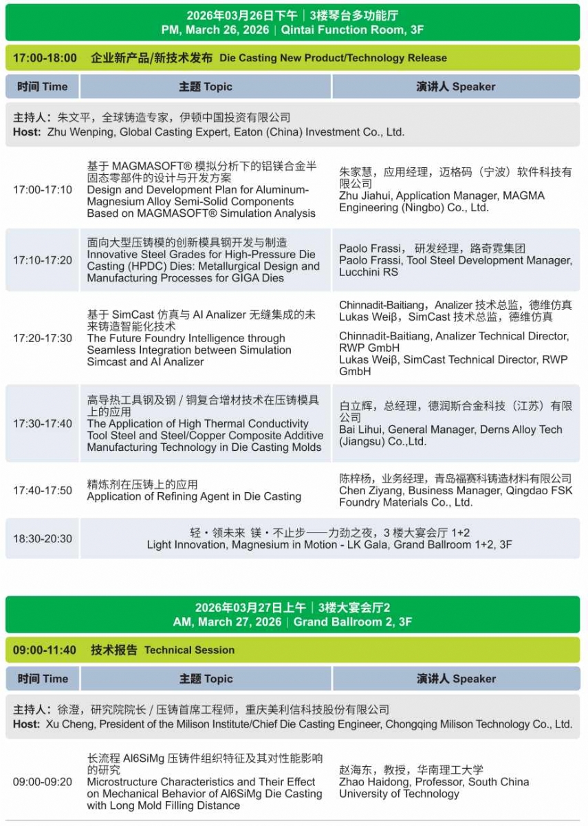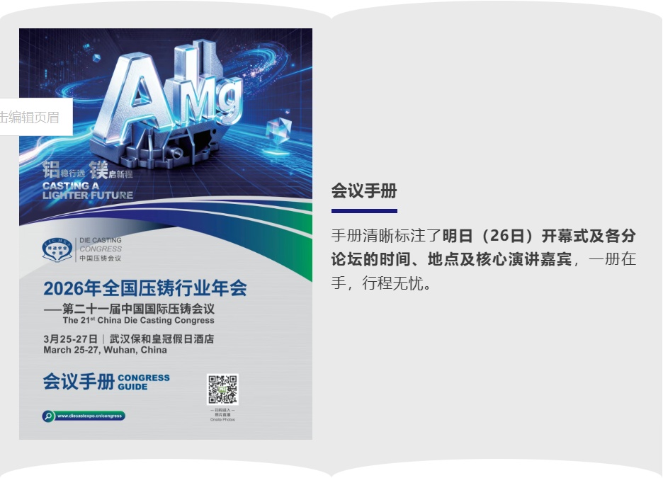 同時,電子版日程同步附后,方便您隨時查閱,精準(zhǔn)規(guī)劃接下來的壓鑄之旅。