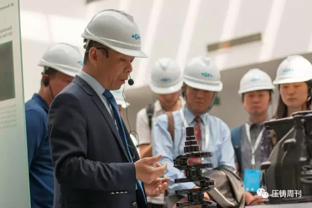 GF專家的專業講解 在研討會的當天上午,主辦方組織來賓參觀了GF 蘇州與昆山的工廠設備、技術以及工藝流程。新遷重建的GF亞太研發中心亦首次對團體觀眾開放。在車間現場,GF通過對各個產品生產過程的講解來闡述GF 是如何實現鑄件從研發到實現生產的輕量化目標,讓在場嘉賓大開眼界。