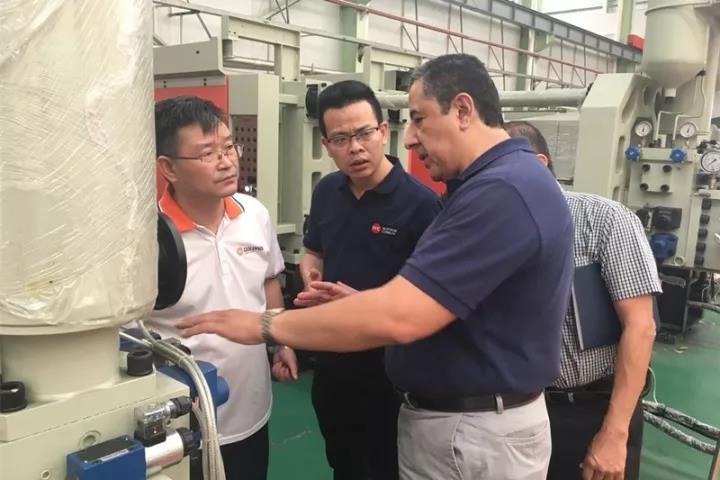 南美洲的客戶前來考察固德威工廠 廣東固德威技術部經理雷順和介紹說:“除了快壓射截止技術,GDC系列還采用多項專利技術。全面優化的控制程序和油路設計,精準斜率控制,比例閥輸出線性下降,任意位置開合模停車更平穩、更準確,重復精度在1mm以內,節省開合模時間,提高生產效率;優化伺服控制系統及程序,解決伺服電機、齒輪泵頻繁受沖擊的問題,大大減少受沖擊次數,延長伺服電機的壽命,同等硬件配置狀況下,可延長50%-60%使用壽命。相比同噸位的機型,GDC300的儲能器容積增大25%,可生產快速行程更長的壓鑄件,因此,適應面更廣,可生產復雜、厚薄壁的壓鑄件。”這款機型尤其適用于手機中板的生產。