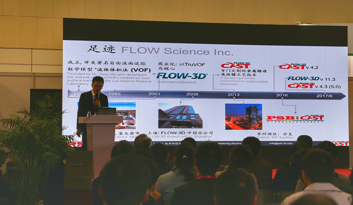 阿爾克森(蘇州)鑄造技術(shù)有限公司展臺展示 演講開始,首先開講的是清華大學(xué)的熊守美教授帶來的“高壓鑄造過程的智能化及模擬仿真”演講題目。高壓鑄造過程工藝的智能化是必然趨勢,鑄造模擬仿真(軟件)為智能化提供技術(shù)支持,降低壓鑄件的生產(chǎn)成本,提高壓鑄生產(chǎn)過程的效率。熊教授圍繞這個主題展開深度講解。 帕盛博(蘇州)軟件科技有限公司(FLOW-3D)楊歡應(yīng)用工程師帶來的“尖端金屬鑄造數(shù)學(xué)模型”演講題目。帕盛博(蘇州)軟件科技有限公司系FLOW-3D CAST鑄造模擬分析軟件在中國的一級代理商,為客戶提供鑄造模擬分析解決方案及技術(shù)支援服務(wù)。楊歡先生以FLOW-3D CAST在高品質(zhì)金屬鑄造的應(yīng)用,為與會嘉賓講解該軟件為鑄造廠帶來的諸多益處。