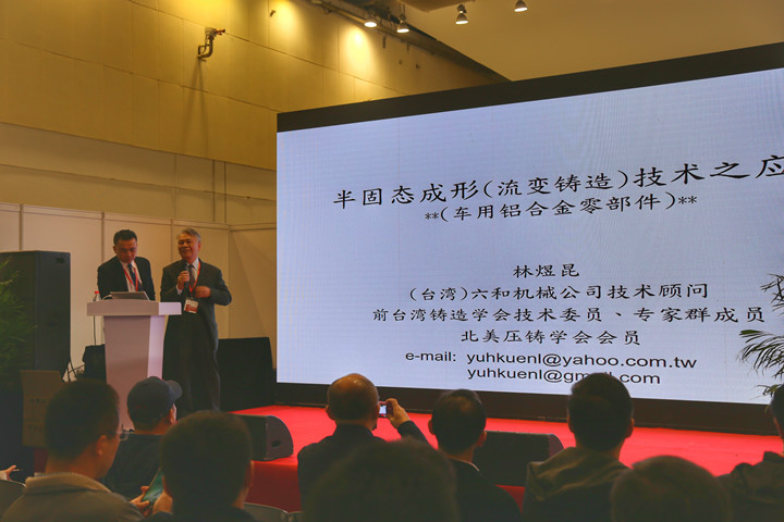 陳俊沐演講“半固態(tài)材料之球化技術(shù)”為題做演講 半固態(tài)材料球化的方法大致分為溶液擾動法與凝固控制法。半固態(tài)材料球化的原理,在溶液擾動法有樹枝狀晶粒溶解模型與Separatiaon Theory(晶核模壁分離模型)兩種;而在凝固控制法,主要是利用成核劑或控制過冷度與鑄造溫度等制程條件,達(dá)到晶粒球化效果。 機械科學(xué)研究總院(將樂)半固態(tài)技術(shù)研究所張拓工程師以“半固態(tài)模擬及應(yīng)用經(jīng)驗分享”為題做演講。張拓先生介紹了半固態(tài)技術(shù)在鋁鑄鎖體應(yīng)用,分析了鑄鋁結(jié)構(gòu)和性能要求。結(jié)構(gòu)性鋁鑄件要求,可以帶來的好處包括:減重和零件一體化,材料替換,高抗拉強度和良好延伸率性能,適用于超低溫測試,需保證設(shè)計壽命在130萬次以上,疲勞測試要求等。同時,他還結(jié)合一些案例分析進行講解。 臺灣六和機械林煜昆顧問演講的“半固態(tài)成形(流變鑄造)技術(shù)應(yīng)用”題目。林煜昆先生表示,現(xiàn)今,半固態(tài)鑄造技術(shù)的應(yīng)用在國外已逐步成為各先進工業(yè)國家競相發(fā)展的一個領(lǐng)域,并被專家學(xué)者稱為“世紀(jì)新一代新興的金屬成型技術(shù)”。國內(nèi)近幾年也開始運用半固態(tài)鑄造成型技術(shù),并很好的在鑄造、壓鑄行業(yè)得到廣泛認(rèn)可。而半固態(tài)鑄造法可以使用改良的臥式壓鑄機、立式擠壓機或鍛造機來成形。由于材料溫度比各種鑄造法低,模具壽命遠(yuǎn)比重力鑄造、低壓鑄造及擠壓鑄造法為佳。又因素材強度高(近乎鍛造件),可以有效輕量化。