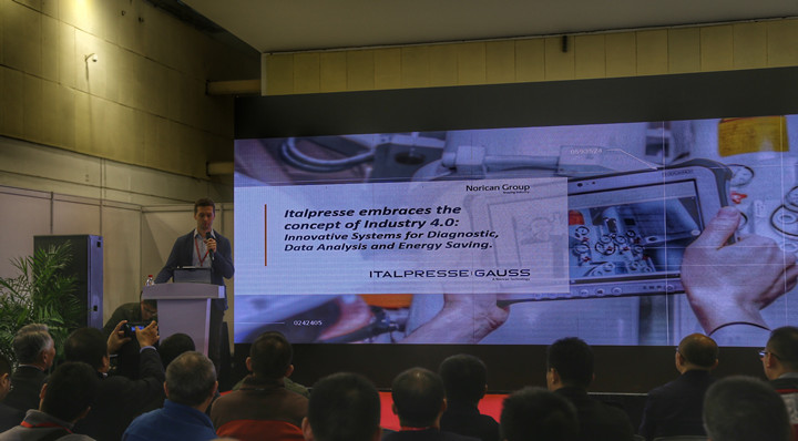 余永吉先生和與會嘉賓交流 意大利意特佩雷斯(Italpresse)的Mr.Zoppetti Marcello帶來“鑄造工業(yè)4.0”的報告。Italpresse基于“工業(yè)4.0”開發(fā)了全新的HME系統(tǒng)。HME是對于診斷、數(shù)據(jù)分析和節(jié)能創(chuàng)新的革新系統(tǒng),它是一個功能強大的智能工具用于機器的實時監(jiān)督和大量實時數(shù)據(jù)的存儲, 具有直觀和友好的用戶界面存儲和歷史的傳感器數(shù)據(jù)事件 將被用于診斷和認(rèn)識復(fù)雜的報警情況的一個有價值的工具通過傳感器的變化仔細(xì)地回憶起機器運行的事件,為維修人員提供了解決故障的有力工具,減少了機器的停機時間Italpresse 4.0 技術(shù)的應(yīng)用人機交互,數(shù)據(jù)存儲和連接, 分析和情報, 智能工廠=可持續(xù)發(fā)展工廠,高質(zhì)量的維護。