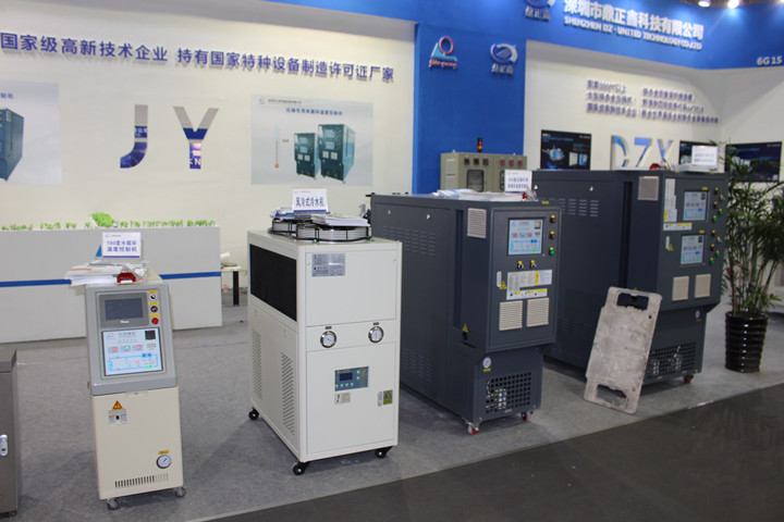 久陽展示的三款不同型號的模溫機,都采用了防爆發熱管裝置,304金屬成型一體管路,能減少管組及銹坸,提高使用壽命;安裝了微電腦雙組P.I.D溫度控制表,觸摸式內儲、自動演算,能省電35%以上;開機自動排氣功能,提高了機器運行的速度,節省了時間。安全保護完善,故障顯示,維修和保養無需專業人員。 另外,久陽風冷式冷水機具有節能效果好、運行安全穩定、性能可靠、運行故障率更低、整體結構緊湊、體積小和占地空間少,重量輕、振動小,安裝操作簡單,運行噪聲低等系列優點。其采用螺桿壓縮機,壓縮機采用雙螺桿對稱齒比(齒數比為5:6)和壓縮過程中內容積比VI自動控制,避免了運行過程中過壓縮引起的能量損失。 |