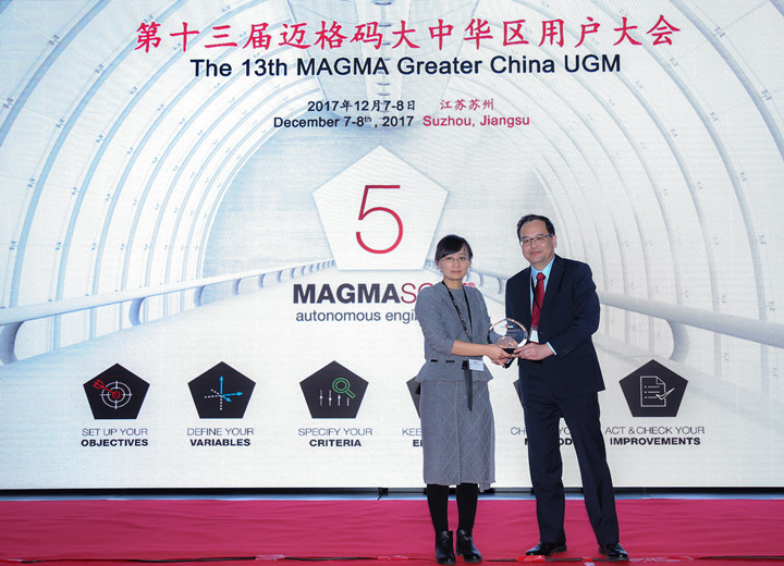 豆子春女士 第一天的報(bào)告演講結(jié)束后,主辦方安排了“2017年度MAGMASOFT優(yōu)秀使用單位頒獎(jiǎng)典禮”。邁格碼亞洲總經(jīng)理趙望前博士、邁格碼中國總經(jīng)理馬修先生共同為天津新偉祥工業(yè)有限公司、愛柯迪股份有限公司、重慶長安汽車股份有限公司3家優(yōu)秀使用單位頒獎(jiǎng)。