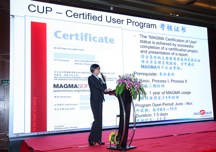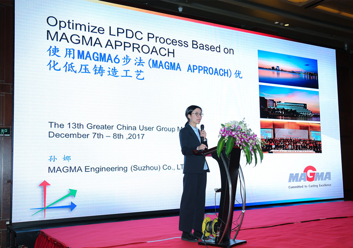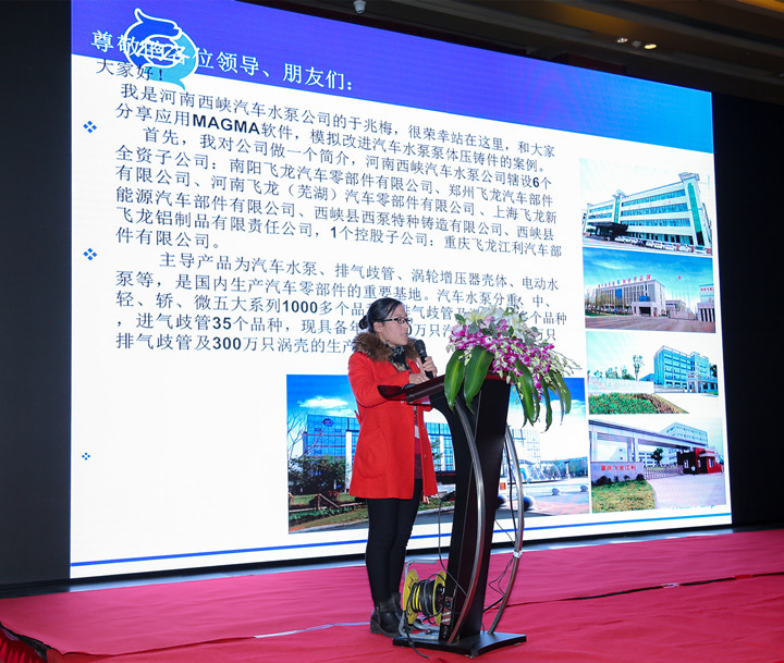 于兆梅女士 接著,邁格碼中國的李鐵先生,以“精鑄工藝的模擬及優(yōu)化”作報(bào)告,邁格碼中國的嚴(yán)世松,分享總結(jié)了“使用MAGMASOFT 6步法(MAGMA APPROACH)高效解決充型難題”的報(bào)告,而來自MAGMA中國培訓(xùn)學(xué)院的豆子春女士介紹了邁格碼中國針對用戶的培訓(xùn)服務(wù)。